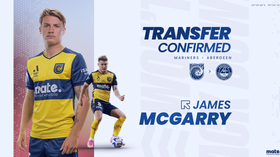 The Central Coast Mariners can confirm that A-League Championship winning defender James McGarry has signed with Scottish Premiership club Aberdeen FC for an undisclosed fee.